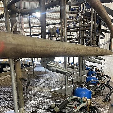 Cows standing on rubbers and clusters: By relocating all stainless steel milk tubes underneath the platform, the risk of cows stepping on rubbers and clusters has been eliminated, reducing damage and increasing longevity of equipment.